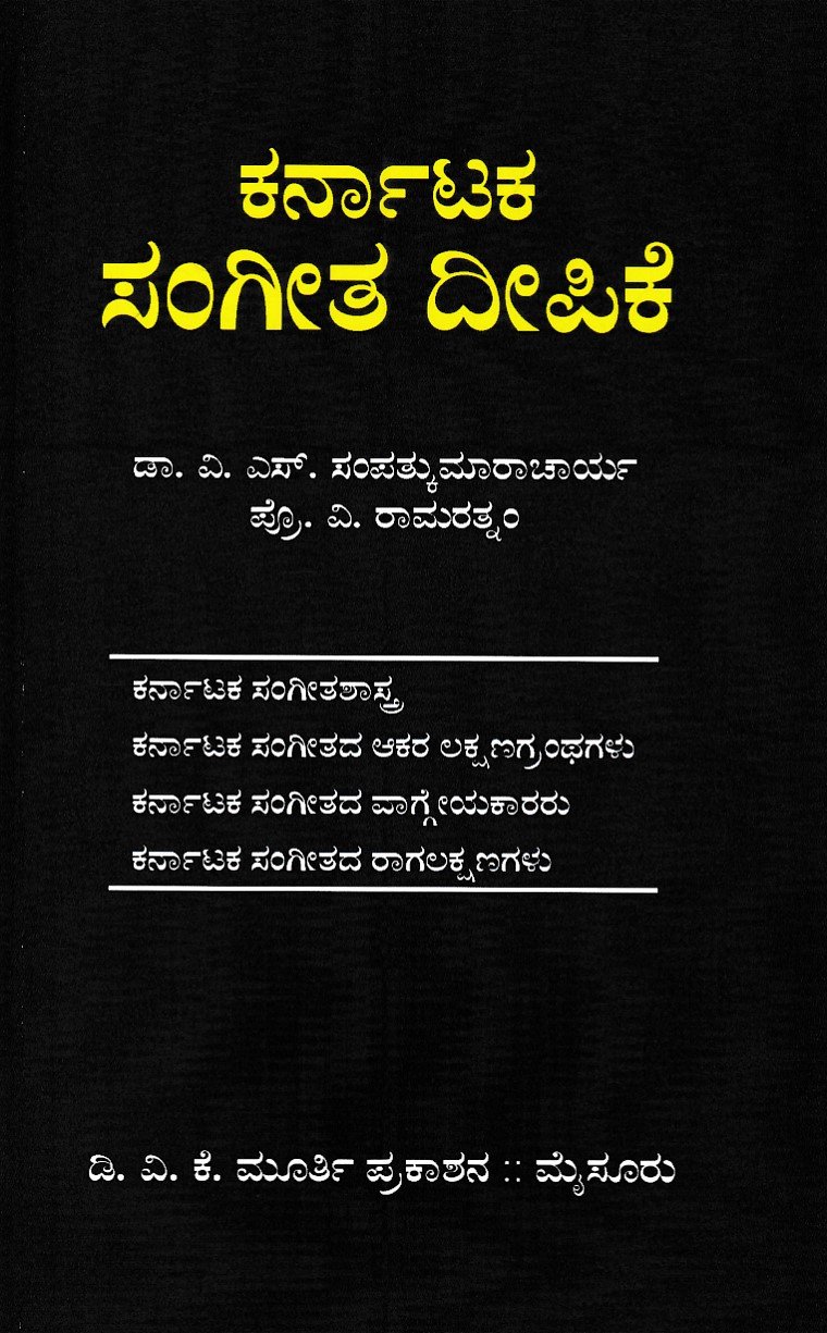ಕರ್ನಾಟಕ ಸಂಗೀತ ದೀಪಿಕೆ / Karnataka Sangeetha Deepike – ಕರ್ನಾಟಕ ಸಂಗೀತದ ಮೂಲ ತತ್ವಗಳು, ಅದರ ಮೂಲ ಗ್ರಂಥಗಳು, ಪ್ರಸಿದ್ಧ ಸಂಗೀತ ಸಂಯೋಜಕರು (ವಾಗ್ಗೇಯಕಾರರು) ಮತ್ತು ರಾಗಗಳ ಲಕ್ಷಣಗಳನ್ನು ಅಧ್ಯಾಯಗಳ ರೂಪದಲ್ಲಿ ವಿವರಿಸುತ್ತದೆ.