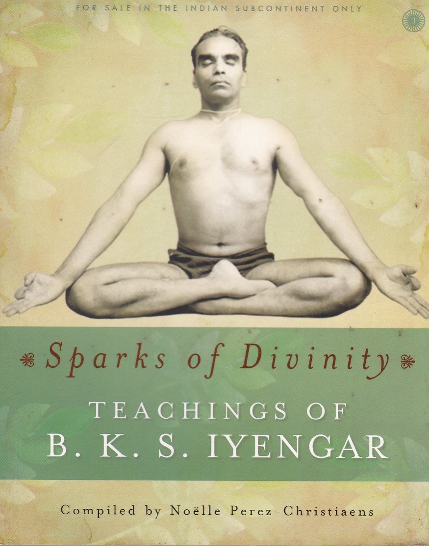 Sparks of Divinity – Sparks of Divinity, compiled by Noëlle Perez-Christiaens, is a collection of the teachings of yoga master B. K. S. Iyengar that shows his way of looking at the world, his philosophy of yoga, his devotion to the Divine and his love for human beings. This book is an intimate glimpse into Iyengar’s personal life and family, and into the formative years of his career. Whether it was when Iyengar was invited by Yehudi Menuin to teach in Gstaad, Switzerland or the opening of the Ramamani Iyengar Memorial Yoga Institute in Pune, this book covers some of the key aspects of Iyengar’s life. Through Perez-Christiaens’ notes and pictures, we see Iyengar fully involved while teaching yoga, helping his student, or even performing a specific pose with her.