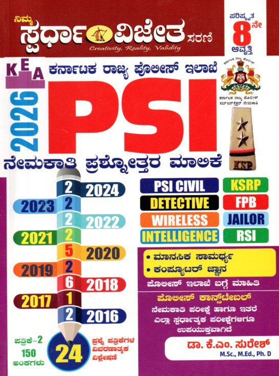 ಸ್ಪರ್ಧಾ ವಿಜೇತ ಪಿ .ಎಸ್ .ಐ. ನೇಮಕತಿ ಪ್ರಶ್ನೋತರ ಮಾಲಿಕೆ / Spardha Vijetha PSI Nemakathi Prashnottara Maalike for PSI, CIVIL, FPB, RSI Competitive Exam’s